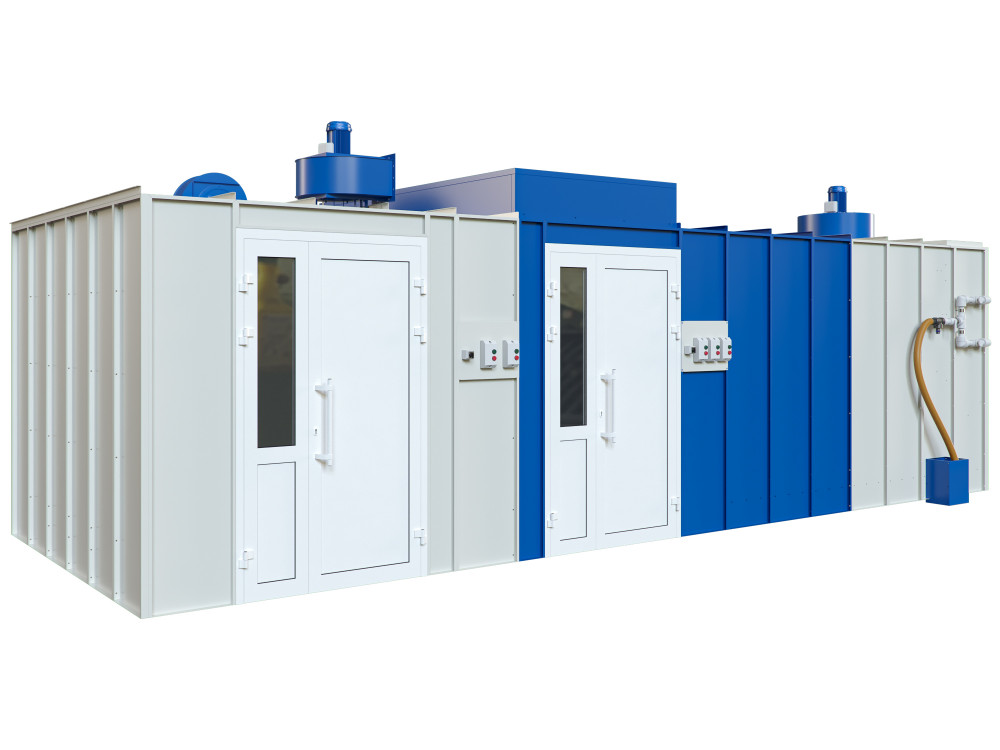 «Чистая комната» с сушильной зоной конструктивно представляет собой герметичную камеру, в которой осуществляется обработка поверхностей под воздействием высокого давления. Приточный воздух проходит через систему предварительной и второстепенной фильтрации.