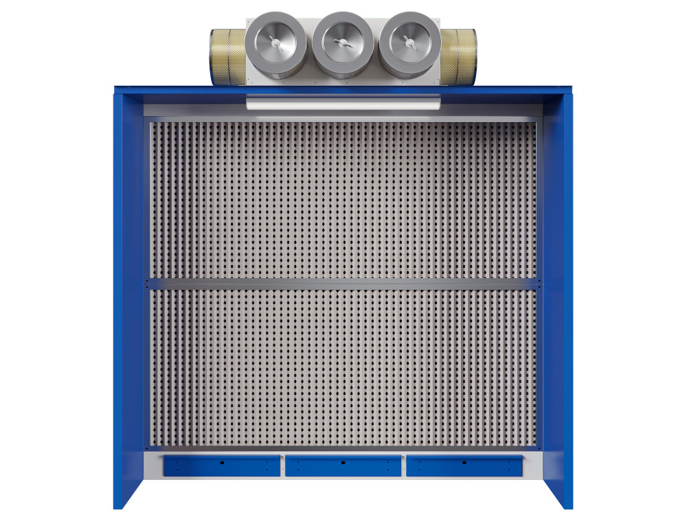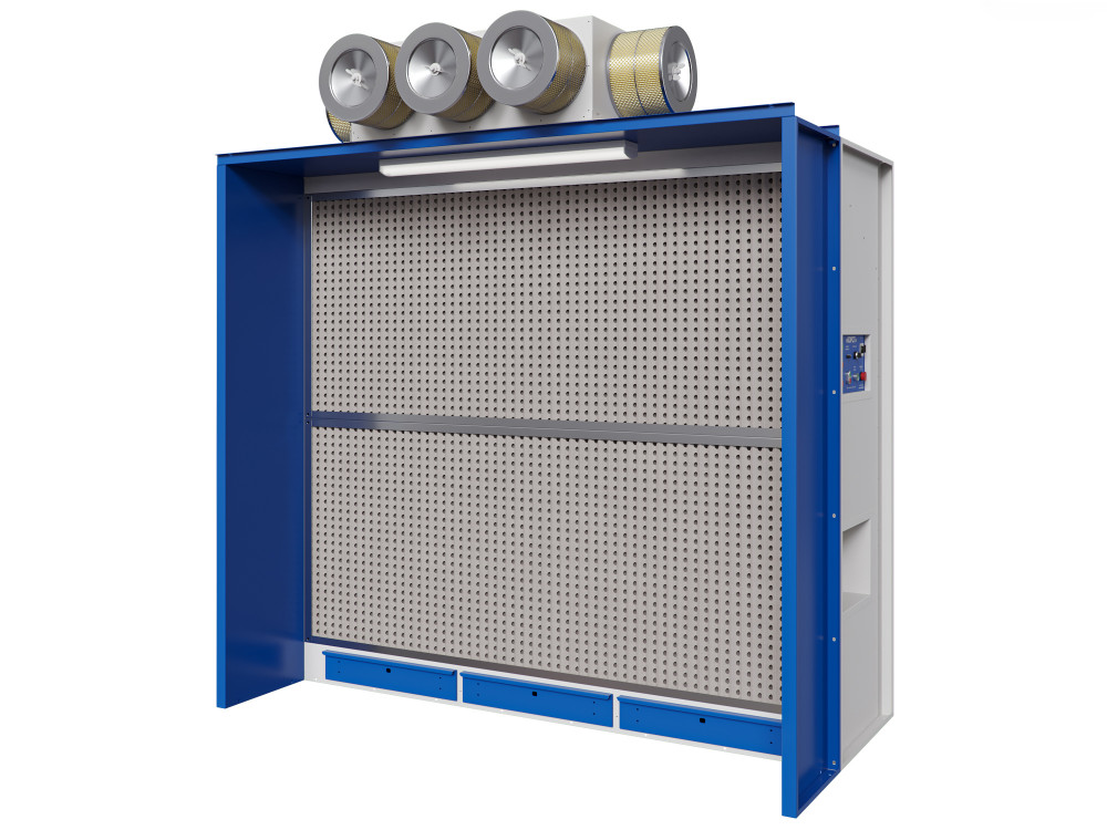 - Удобная и функциональная сборно-разборная конструкция камеры. Съемные картонные лабиринтные фильтры 1-й ступени очистки, съемные сменные воздушные фильтры 2-й и 3-й ступеней очистки, выдвижные ящики-накопители для удаления пыли и стружки (в нижней фронтальной части рабочей зоны).