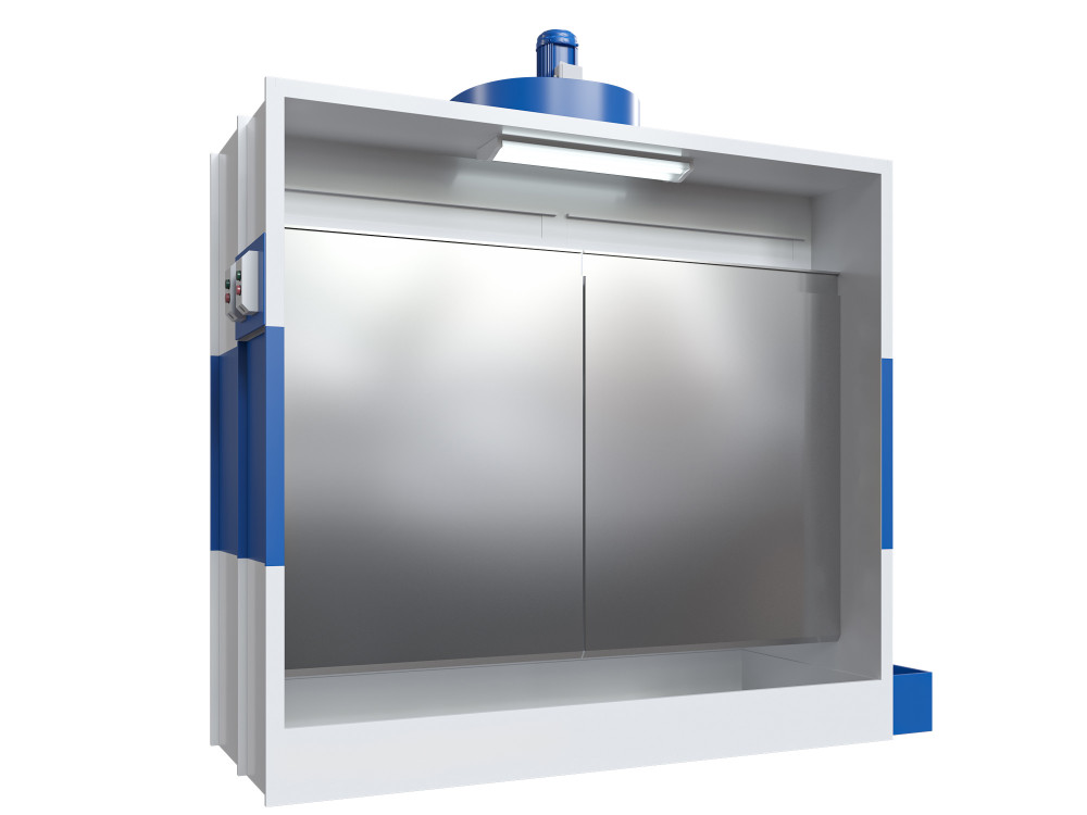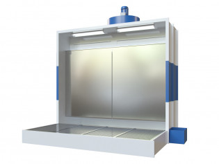 Задача покрасочной камеры обеспечить очистку и вытяжку воздуха в зоне распыления от окрасочного тумана и паров растворителя.