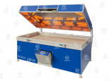 Термомодуль откидывается в одну из сторон по типу "книги", тем самым позволяя экономить пространство в помещении, когда нет возможности разместить вакуумный пресс с откатным термомодулем.
