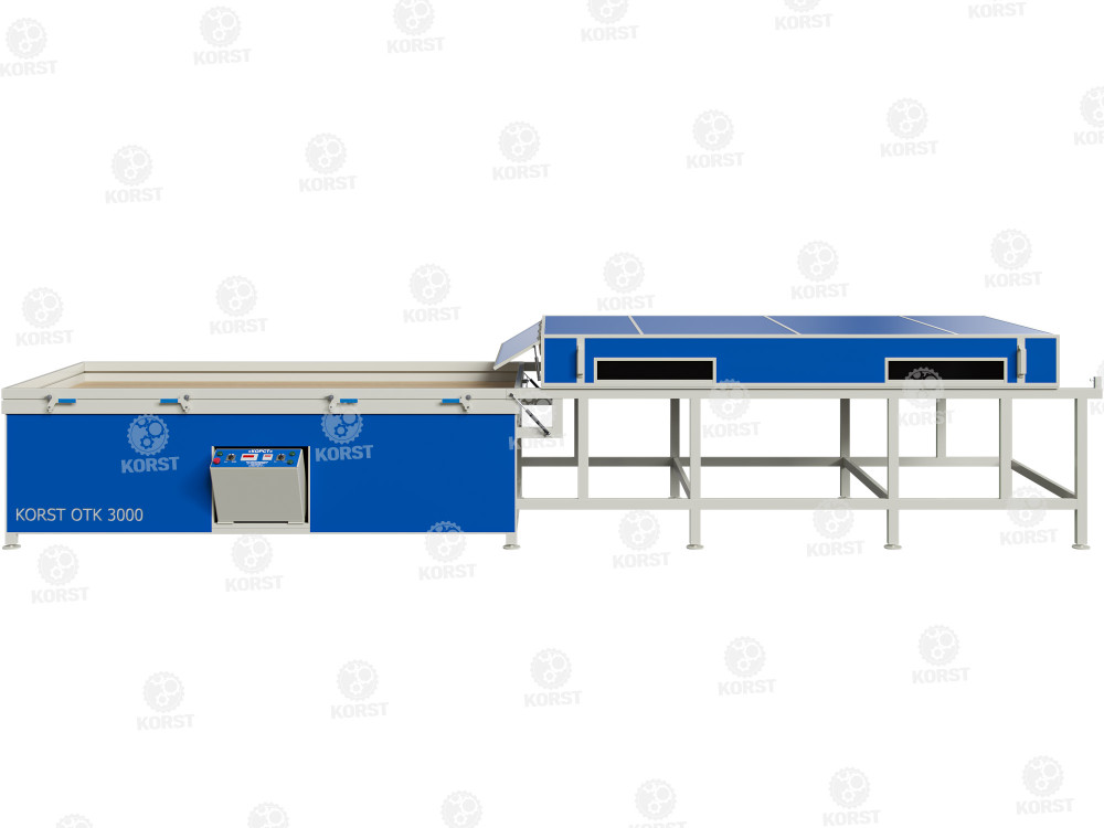 Вакуумный пресс для мебели КОРСТ 3000 OTK – это удобное и эффективное оборудование, специально созданное для облицовки мебельных фасадов (МДФ, ДСП и т.п.) ПВХ плёнками, шпоном, пластиком, текстурированной бумагой.