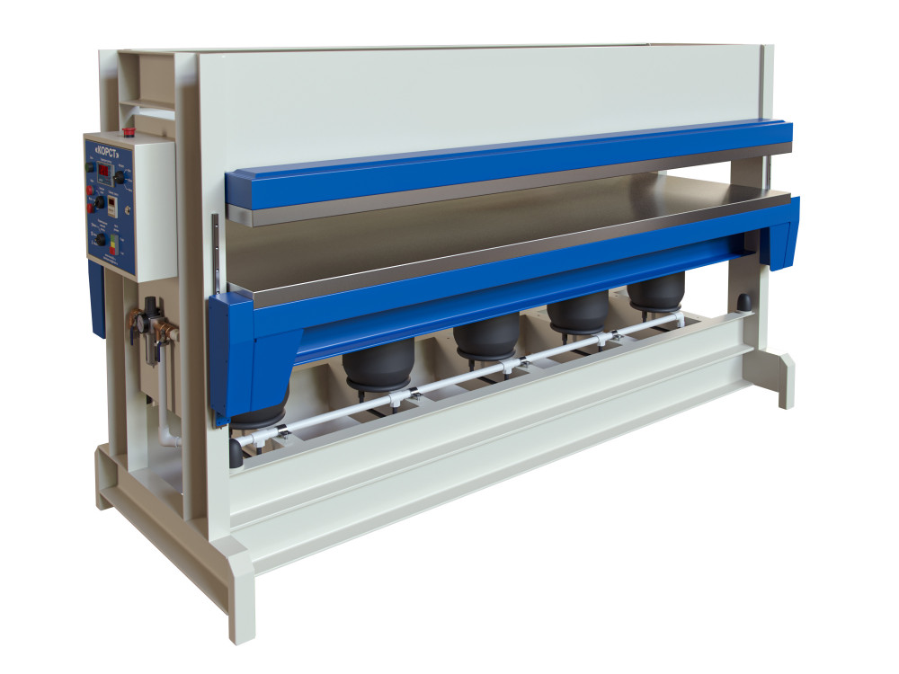 Пресс пневматический горячего прессования Корст ГПП-2010 – предназначен для склеивания под температурой (max 100 C) плоских заготовок в пачке, для облицовывания плоских заготовок с одной или двух сторон шпоном, различными пластиками и пленками, а также для стеновых панелей и композитных материалов.