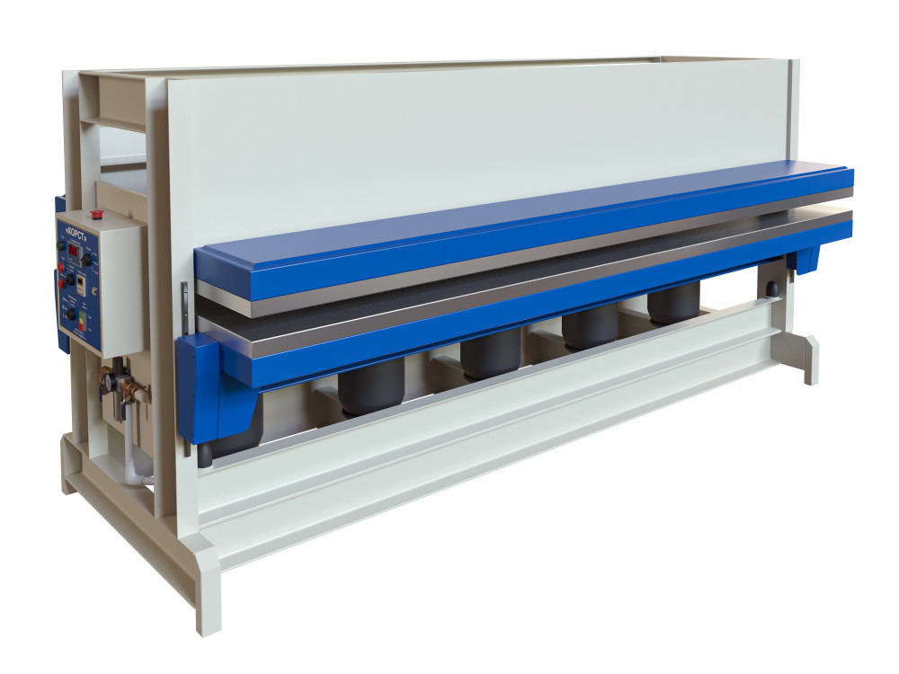 Пресс пневматический горячего прессования Корст ГПП-3015 – предназначен для склеивания под температурой (max 100 C) плоских заготовок в пачке, для облицовывания плоских заготовок с одной или двух сторон шпоном, различными пластиками и пленками, а также для стеновых панелей и композитных материалов.