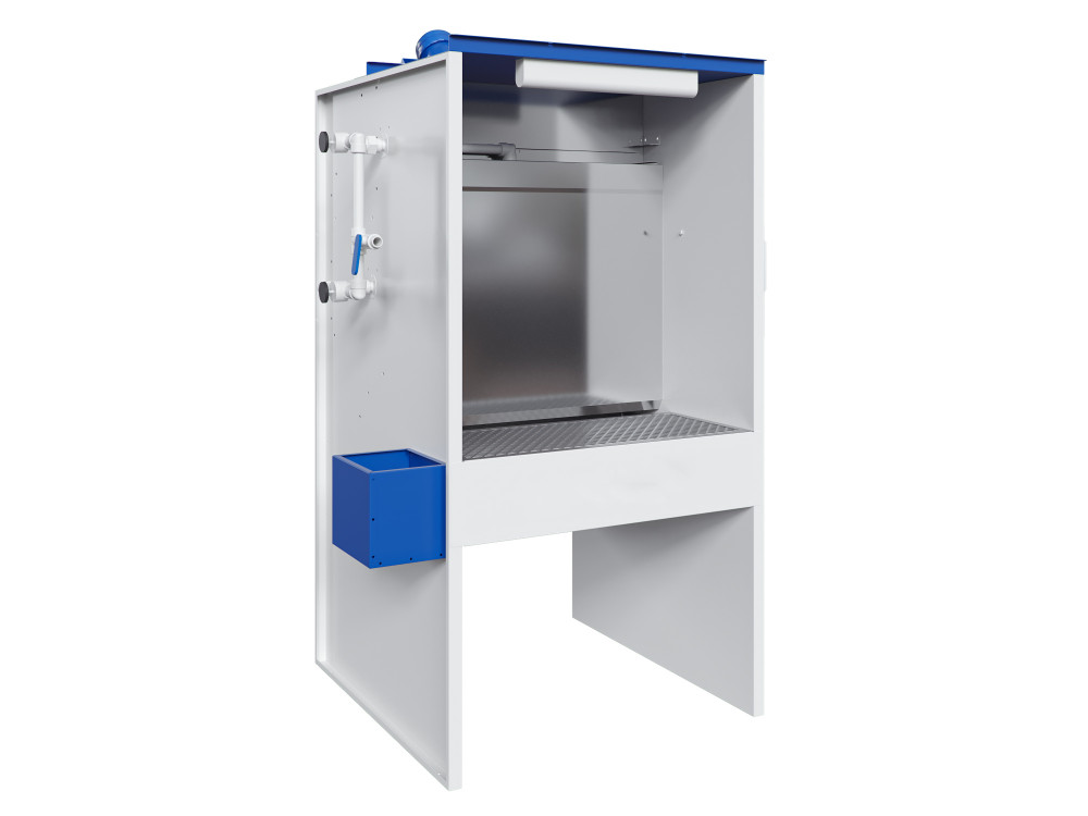 Водяные окрасочные кабины (с гидрофильтром) за счет фронтальной лицевой завесы улавливают окрасочный туман, а поток воздуха, создаваемый вентилятором, также осуществляет втягивание загрязненного воздуха.