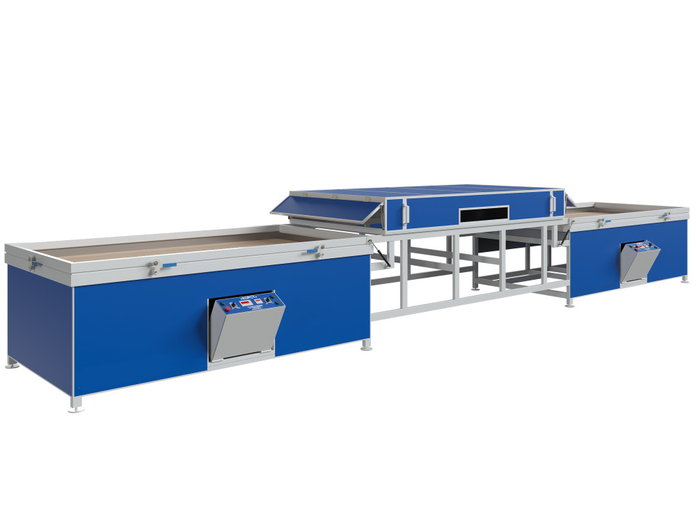 Вакуумный пресс КОРСТ 2500-2 имеет в базовой комплектации два рабочих стола, в отличии от других модификаций, и позволяет увеличить производительность смены и количество готовой продукции (облицованных фасадов).
