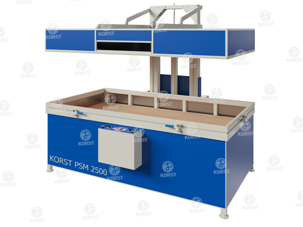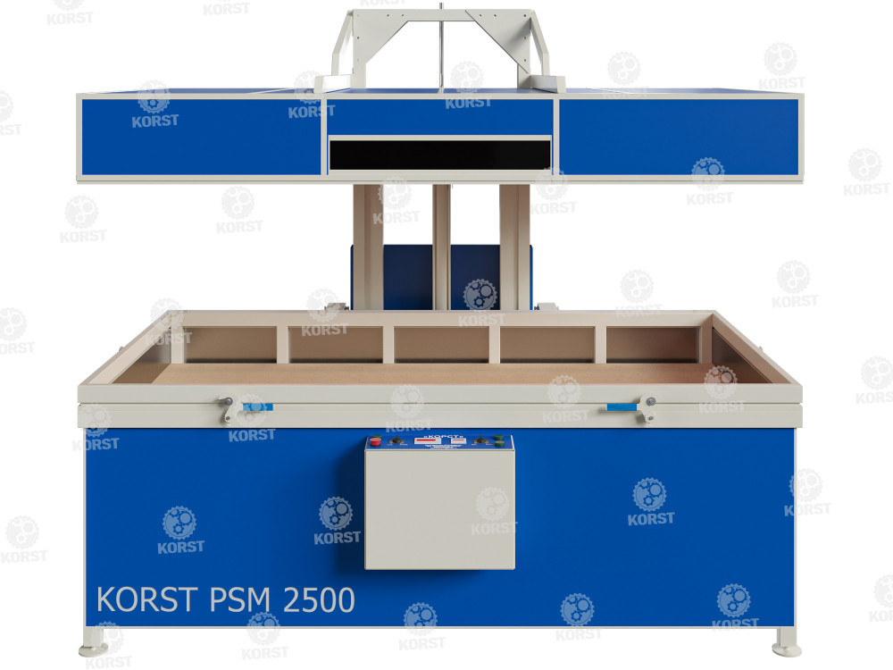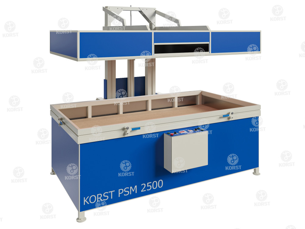 Вакуумный пресс для мебели КОРСТ 2500 PSM – это удобное и эффективное оборудование, специально созданное для облицовки мебельных фасадов (МДФ, ДСП и т.п.) ПВХ плёнками, шпоном, пластиком, текстурированной бумагой.