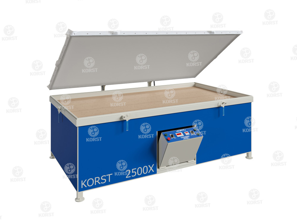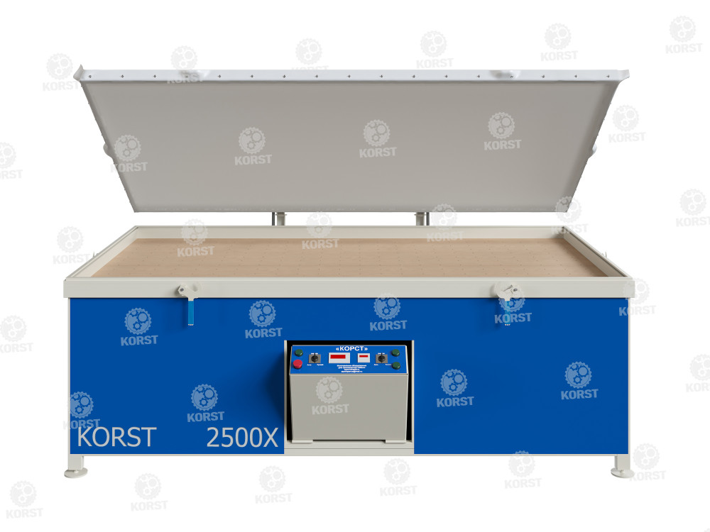 Вакуумный пресс КОРСТ 2500Х отличается от обычных вакуумных прессов тем, что у данного пресса отсутствует термомодуль, а так же нагрев.