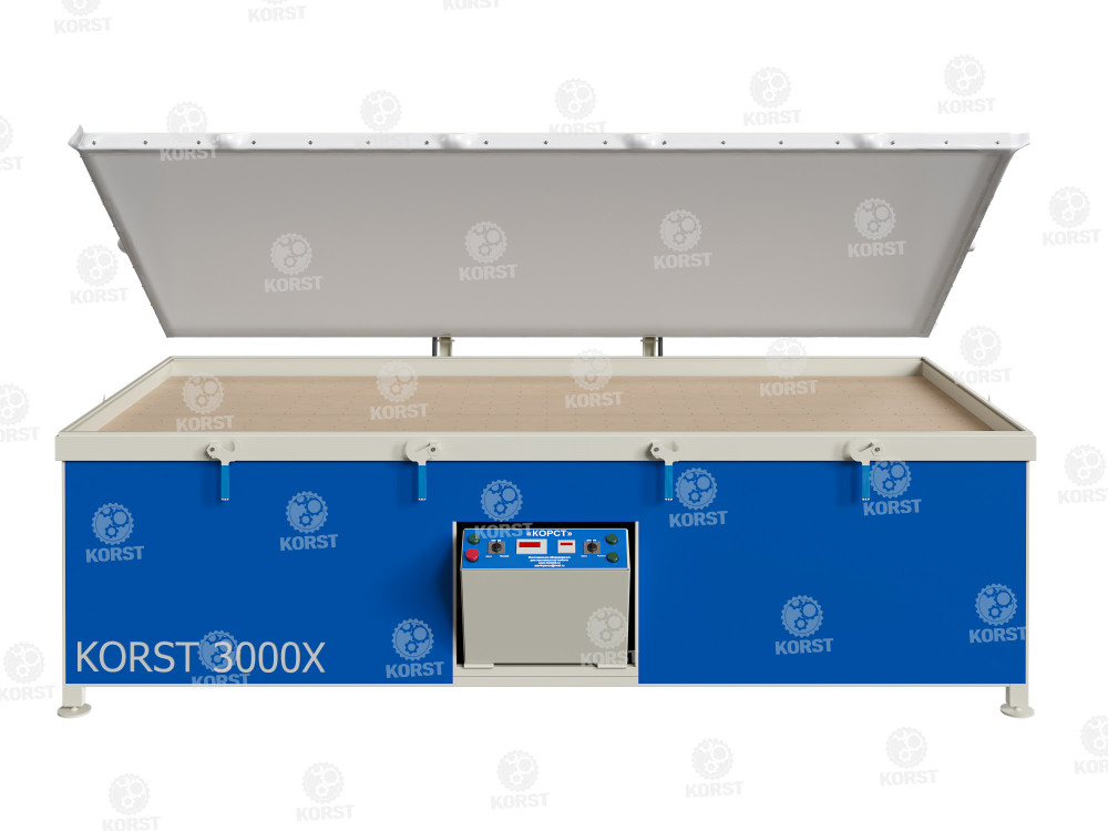 Вакуумный пресс КОРСТ 3000Х отличается от обычных вакуумных прессов тем, что у данного пресса отсутствует термомодуль, а так же нагрев.