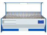 Данное оборудование не нуждается в подключении аспирации (стружкоотсоса), имеет собственные фильтры для улавливания пыли и стружки, которые находятся внутри рабочего стола. Фильтры являются полностью регенерируемыми. Внизу в передней части стола находятся два выдвижных ящика-накопителя, которые легко открываются и вынимаются для их очистки. Управление столом осуществляется с помощью пульта, расположенного на фронтальной части стола.