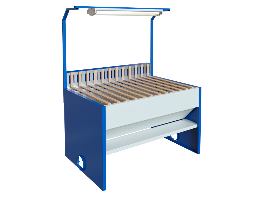 Данная модификация вытяжного шлифовального стола имеет в базовой комплектации освещение, а так же вытяжку на задней стенке, которая повышает эффективность работы всей системы.