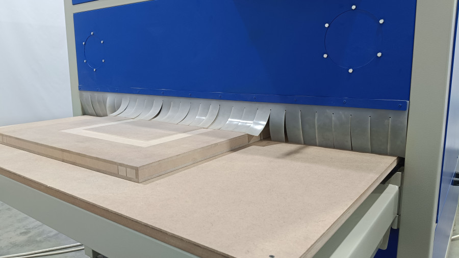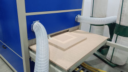 Вакуумный стол надёжно удерживает деталь по всей плоскости, что важно для тонких элементов и щитов с небольшой «волной»: заготовка не смещается, не вибрирует и обрабатывается стабильно. В практической эксплуатации это даёт три ощутимых эффекта: выше качество получаемого изделия, меньше брака на окраске, и быстрее цикл подготовки поверхности без длительной ручной дошлифовки «трудных мест».