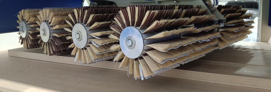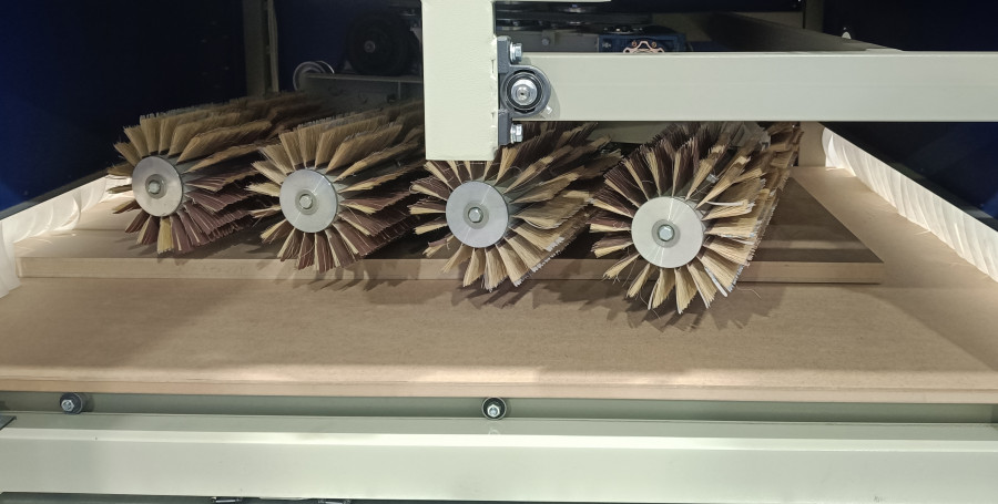 Гибкая настройка режимов: все двигатели оборудованы частотными преобразователями, поэтому оператор может точно регулировать скорость вращения щёток под конкретный тип заготовки - МДФ или шпон, а также под этап обработки (деликатное снятие ворса или более интенсивная доводка).