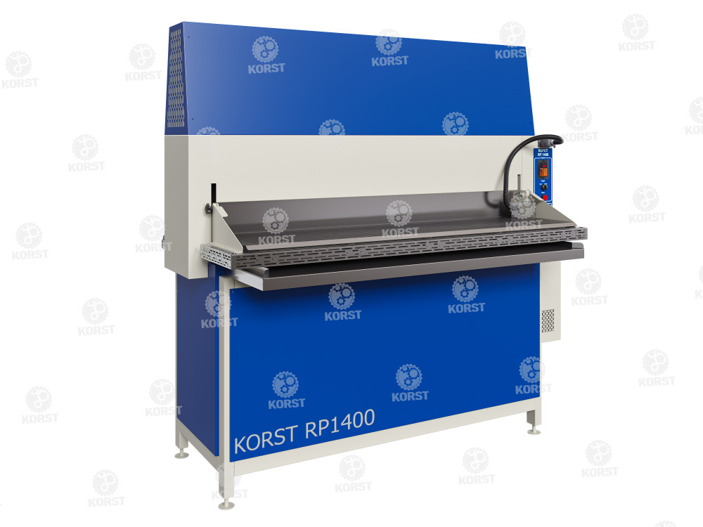 Пресс роликовый «Корст RP 1400» проходного типа (прессование методом прокатывания вальцами) предназначен для одностороннего облицовывания плоских плитных материалов (ДСП, ДВП, МДФ), в том числе, заранее профилированных, различными пленками и пластиками с нанесенным предварительно клеем для последующего приклеивания свеса на профильную кромку методом постформинг и кромочного материала методом софтформинг. Идеально подходит для применения на предприятиях и в цехах для среднего и крупносерийного производства офисной и кухонной мебели, мебельных фасадов и столешниц.